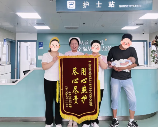 我顺手接过婴儿车,轻轻摇晃着,车里的小家伙在温暖的颠簸中睡得正香。“哥,你别往心里去。月嫂一走,你们俩都是新手,肯定会手忙脚乱的。小静现在不光身体累,心理压力也特别大,总担心自己照顾不好孩子。那些埋怨,其实是因为‘妈妈’这个新身份让她有点喘不过气了,你多多理解,多搭把手,帮她分担一些,她的情绪肯定会好很多的。” 杨哥怔怔地看着婴儿车里安睡的儿子,脸上紧绷的棱角一点点软化了。 小静夫妇给晓晓护士送来锦旗 这样的开解,在小静整个产后康复周期里几乎从未间断。从月子病房到产后修复室的那段路,虽然不长,但我们却一起走了很久,见证着他们小两口关系的逐渐缓和。
