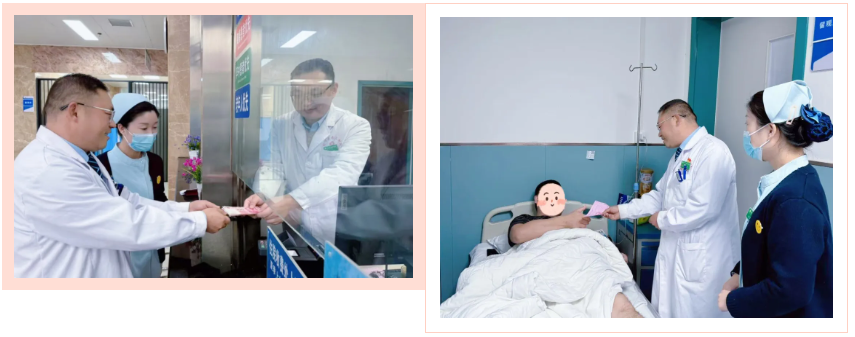 高效顺畅的接诊过程让患者与家属倍感安心。为表达真挚的感谢,家属悄悄将2000元现金红包塞进屈振宁的诊室抽屉。面对这份沉甸甸的心意,屈振宁深知,若断然拒绝或许会加重患者的心理负担。为让患者安心接受手术,他按医院规定,将红包转交门诊部护士长登记处理,待术后安排。 屈振宁副主任医师为患者手术中 在骨一科、感染科、麻醉科的紧密配合下,屈振宁亲自主刀,手术顺利完成。术后,屈振宁和门诊部护士长一起将2000元红包全数存入患者的住院账户,在将缴费单交还家属手中的时,他诚恳表示:“红包肯定不能收,救助病患是我们职责所在,每一位患者我们会全力以赴,患者康复就是我们最大的心愿。”  屈振宁和门诊部护士长一起将缴费单交给患者 握着那张特殊的缴费单,患者与家属感动不已。薄薄一张纸,承载的却是医者厚重的职业道德与纯净仁心。