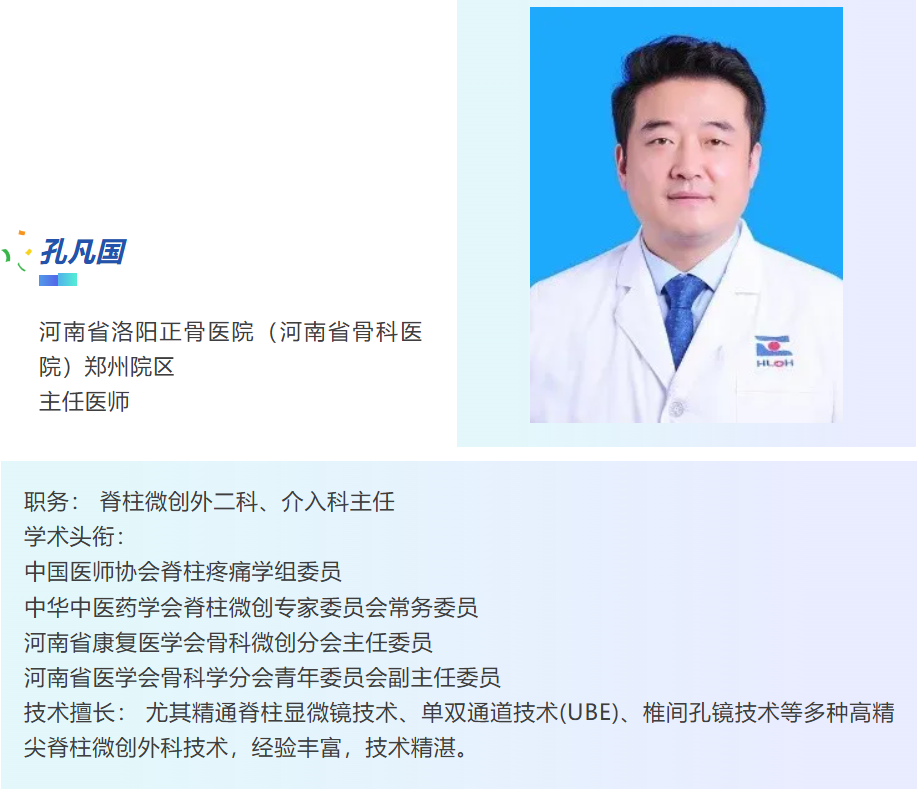 本周六(11月1日) 河南省洛阳正骨医院 脊柱微创中心 孔凡国专家团队亲临我院坐诊 享“国字号”的优质诊疗服务 来南阳医专三附院!更重磅的是 11月1日起,河南省洛阳正骨医院孔凡国团队每周六上午在我院坐诊。 此次名医常态化坐诊,是我院与河南省洛阳正骨医院(河南省骨科医院)成功组建骨伤专科联盟后的又一惠民举措,让豫西南地区的百姓无需远行,即可持续享受顶尖的骨伤诊疗资源。 本周坐诊信息 坐诊时间: 2025年11月1日(本周六) 坐诊地点: 南阳医专第三附属医院门诊楼一楼 107诊室预约电话: 13693872883(建议提前预约,优先就诊)权威专家团队介绍   上一篇:【重要通知】中医特色疗法盛会报名倒计时:非遗传承大家莅临”授课+实训“ 上一篇:【重要通知】中医特色疗法盛会报名倒计时:非遗传承大家莅临”授课+实训“