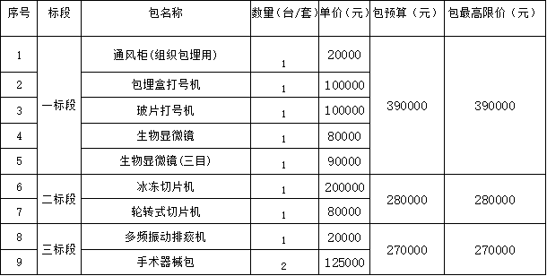 4、预算金额:一标段:390000元;二标段:280000元;三标段:270000元。